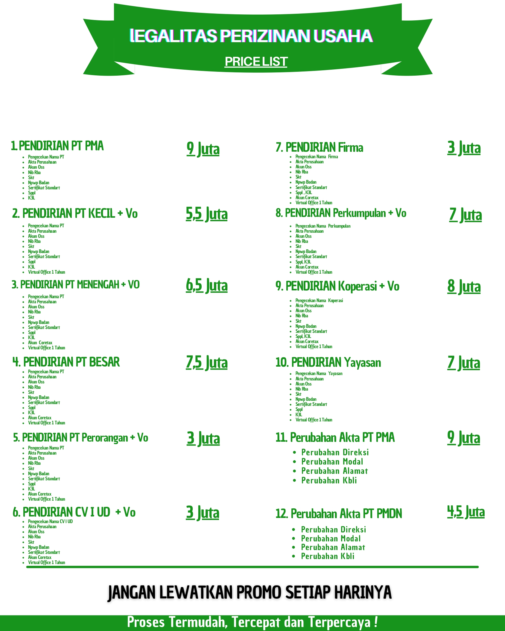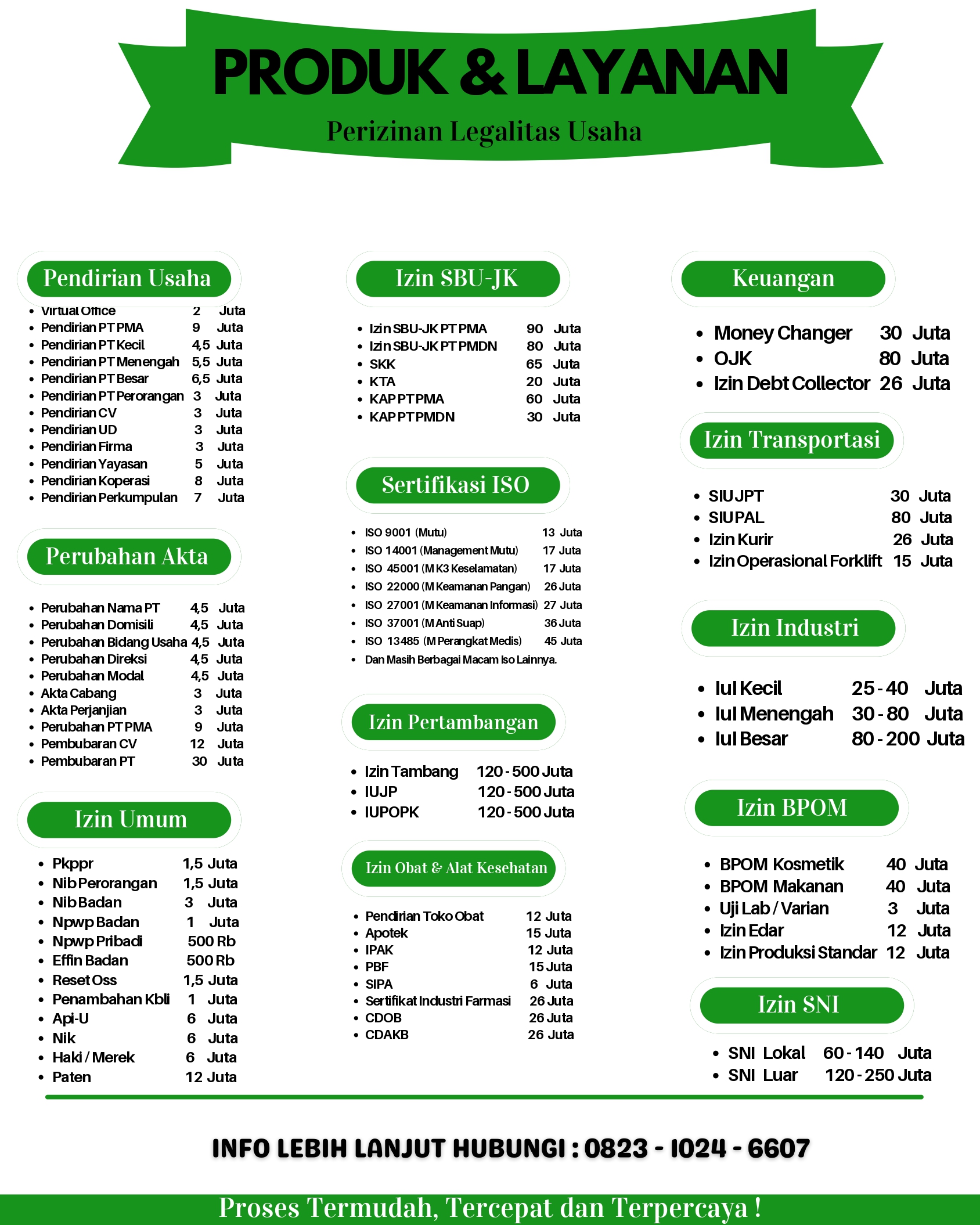 Spesial untuk Anda! Kami tawarkan layanan pendirian PT PMA biaya terjangkau, proses aman dan mudah dengan promo eksklusif dan kuota terbatas! Jangan lewatkan kesempatan ini.